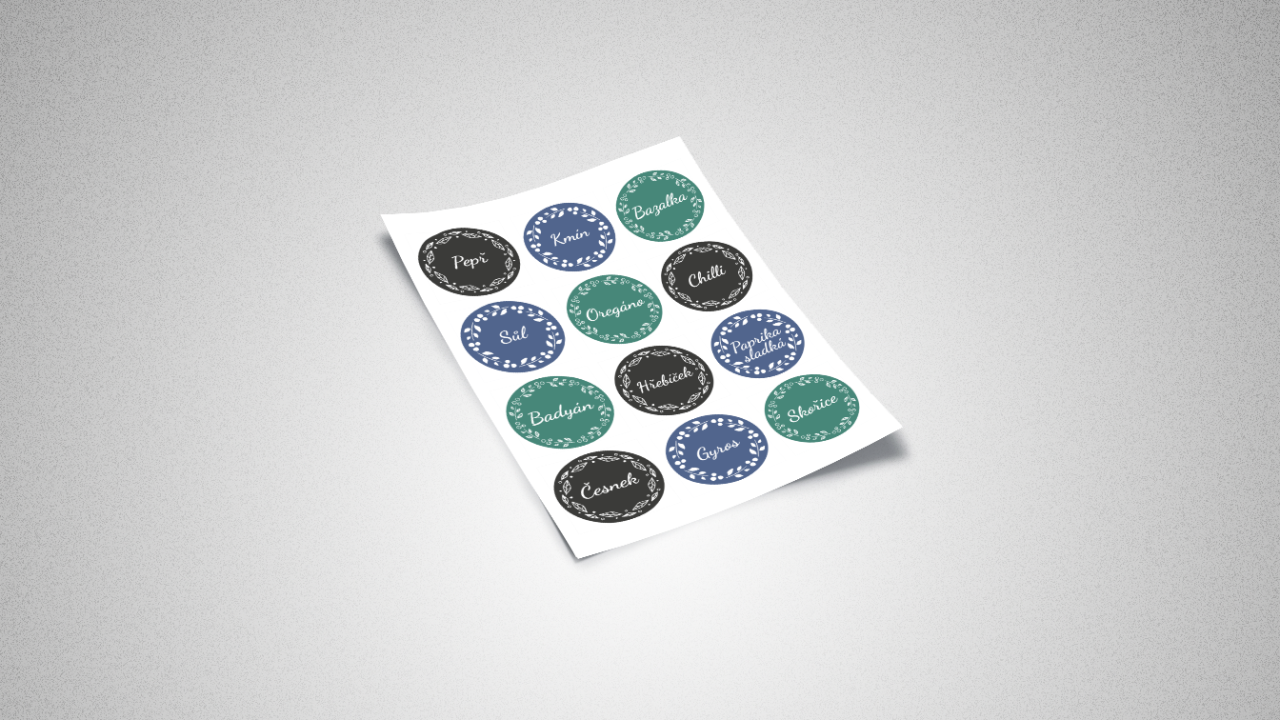 Při koupi více sad (archů) množstevní sleva již od dvou kusů. Papírové samolepky na sklenice s kořením, kruhové, průměr 60mm, cena je za arch